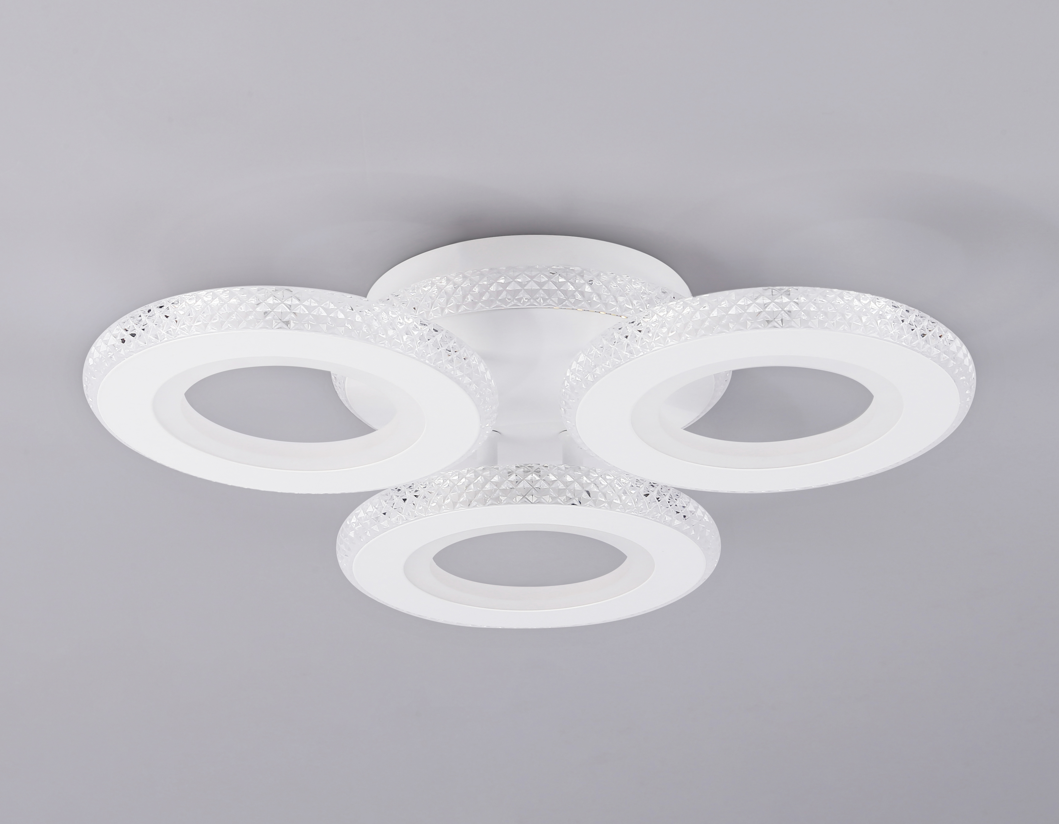 Современный потолочный светодиодный светильник, коллекция ACRYLICA. Модель FA8866 представлена в современном стиле Неоклассика. Светильник выполнен в белом цвете, круглой формы, состоит из 3 акриловых плафонов на металлическом каркасе. Эта модель оснащена встроенными светодиодами, благодаря чему вы забудете о замене дополнительных ламп. Так же с помощью инфракрасного пульта вы сможете регулировать цветовую температуру, яркость освещения. Данная модель подходит для натяжных потолков и будет прекрасным дополнением в любом помещении.