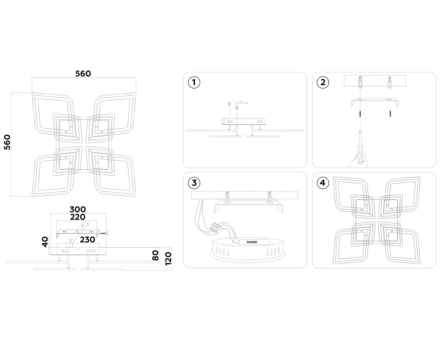 FA8912/4+4 BK/CH черный/хром 162W 3000K-6400K 560*560*120 (ПДУ РАДИО 2.4G)