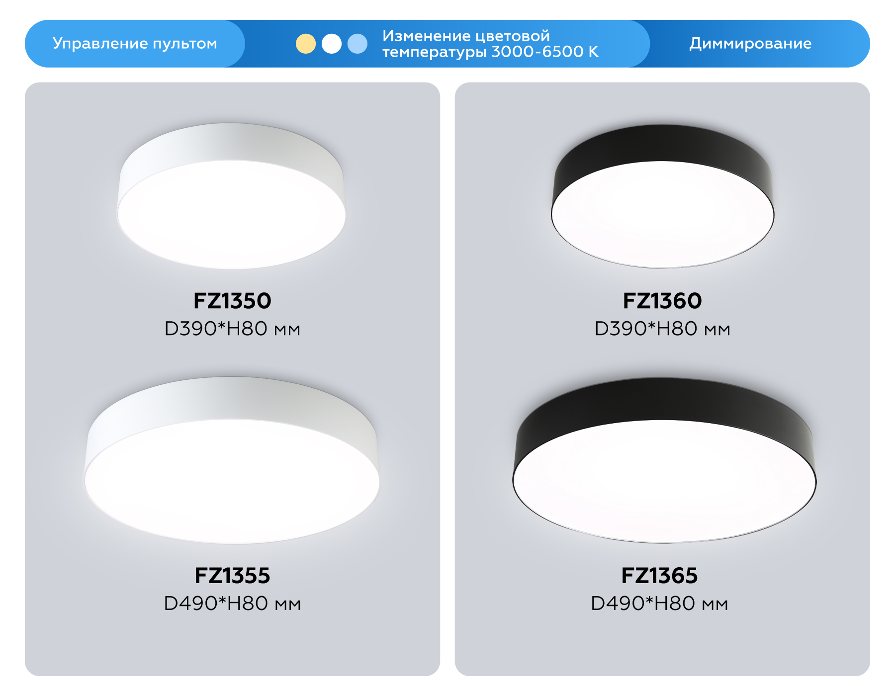 FZ1355 WH белый IP20 60W 3000-6500K 490*80 (ПДУ ИК)