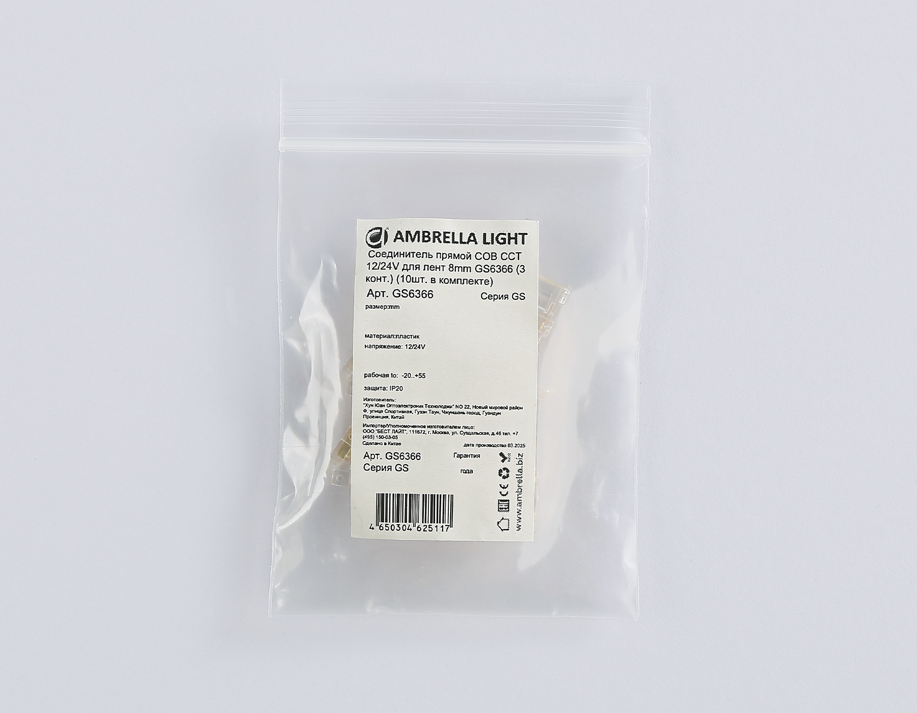 GS6366 Соединитель прямой COB CCT 12/24V для лент 8mm (3 конт.) (10шт)