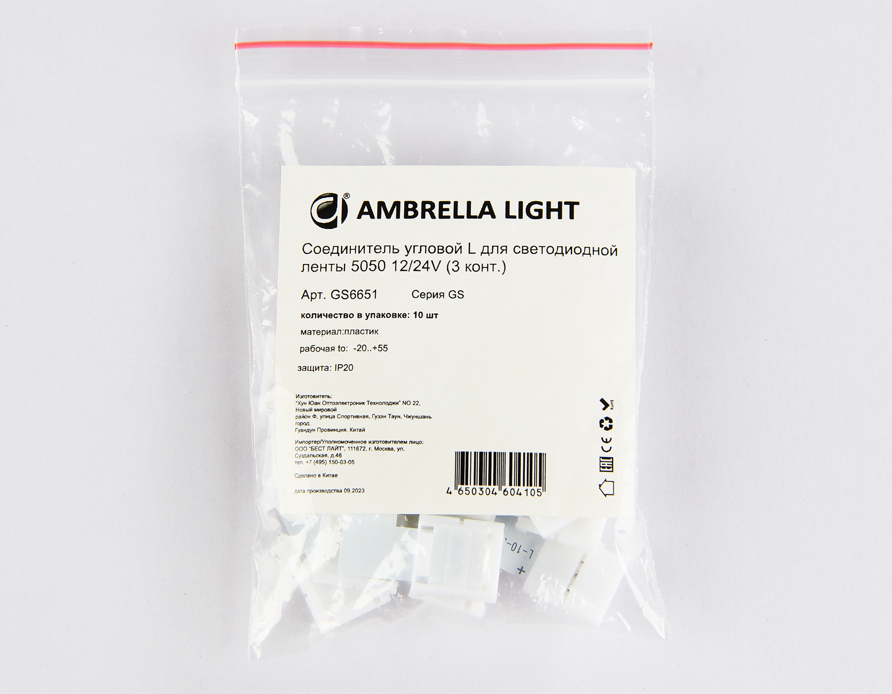 GS6651 Соединитель угловой L 5050 12/24V (3 конт.) (10шт)