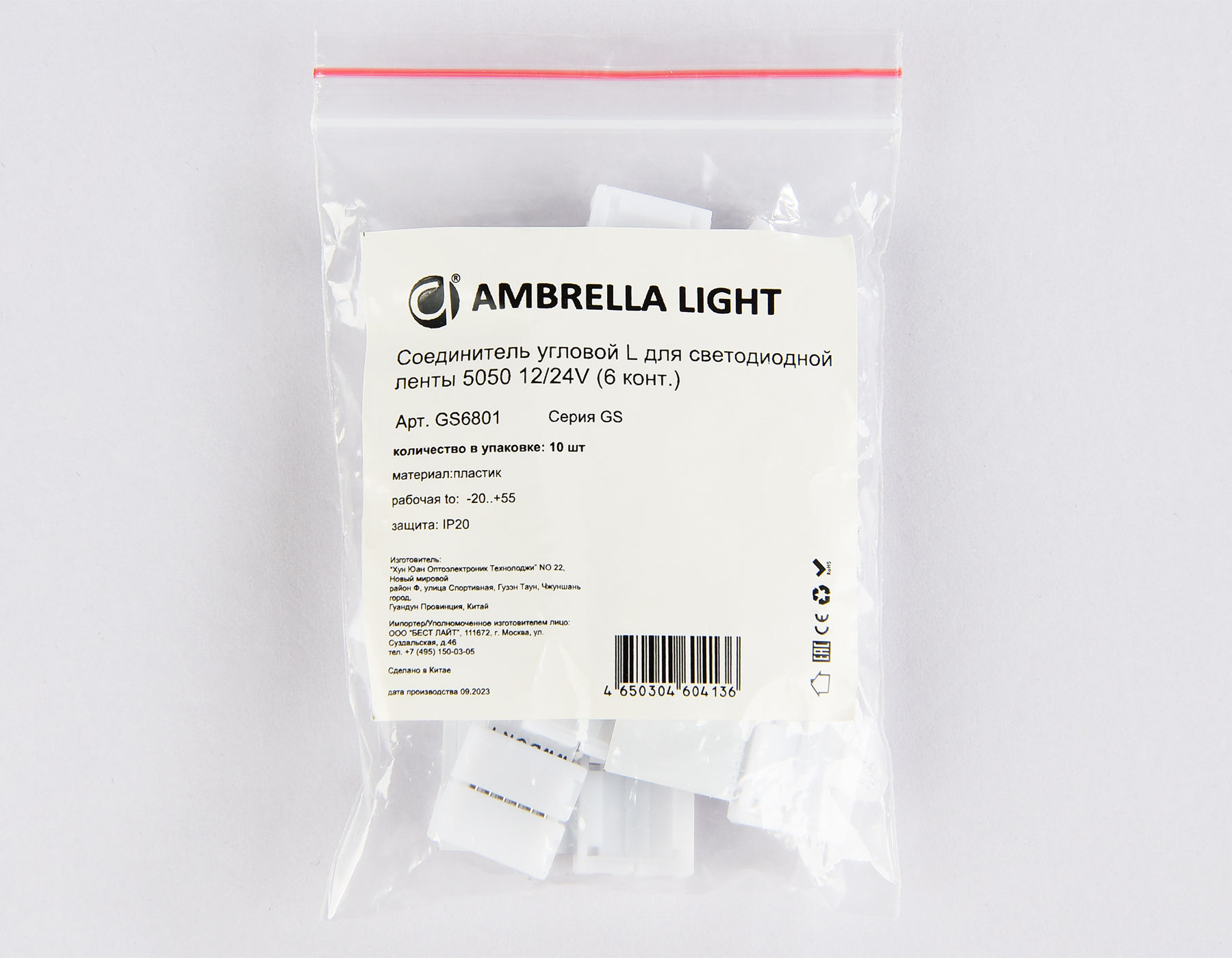 GS6801 Соединитель угловой L 5050 12/24V (6 конт.) (10шт)