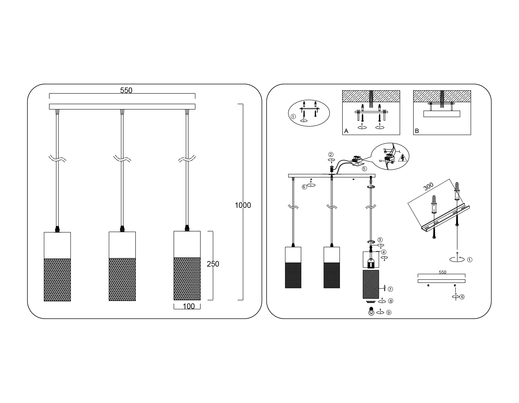 TR8501/3 BK черный E27/3 max 60W 550*100*1000