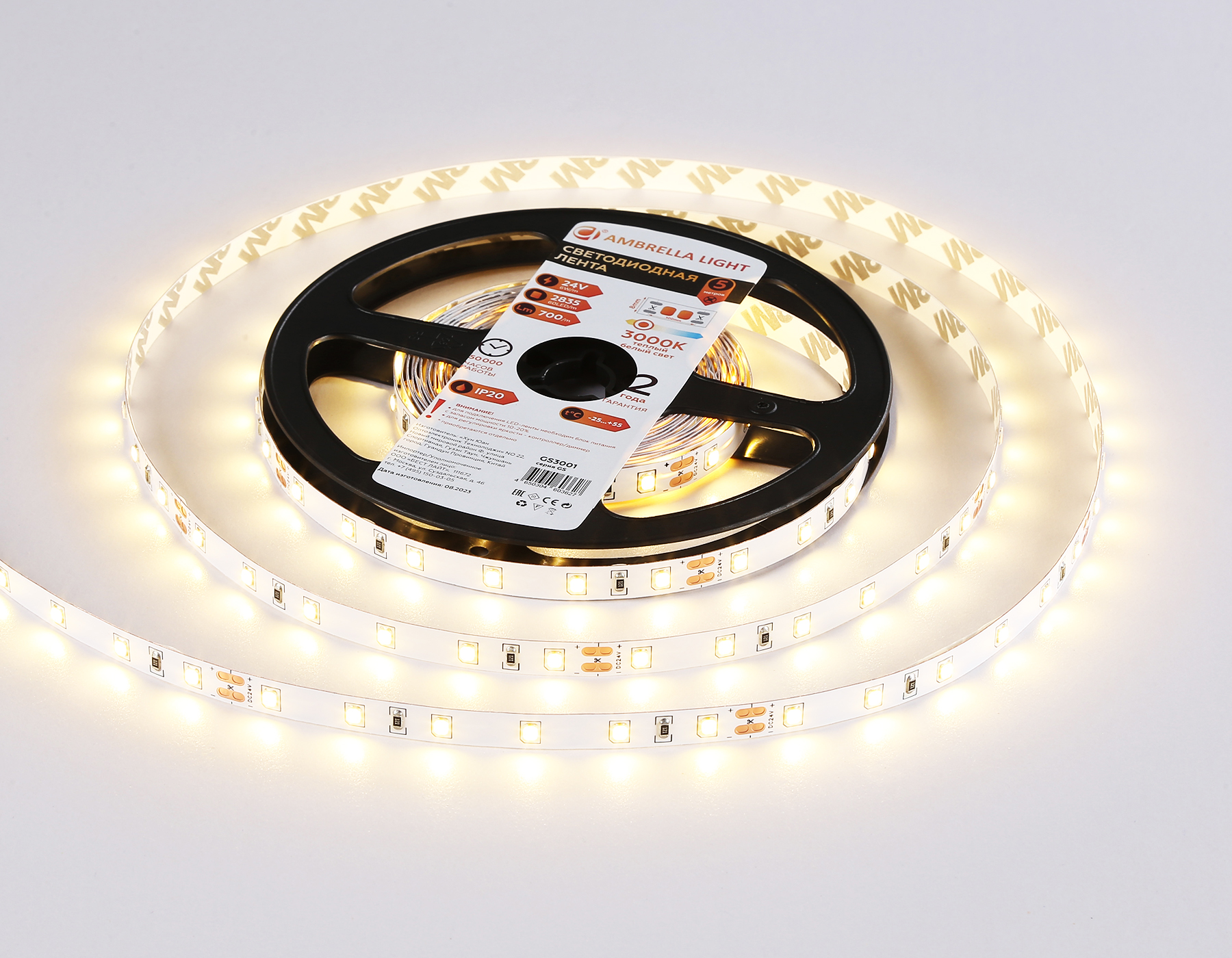 Светодиодная лента из коллекции ILLUMINATION, катушка 5метров, самоклеящаяся, теплого света 3000К, применяется для подсветки любого интерьера. Лента оснащена защитой IP20, так же ее можно резать на отрезки. Длительный срок службы, более 50000 часов. Мощность блока питания зависит от длины ленты.