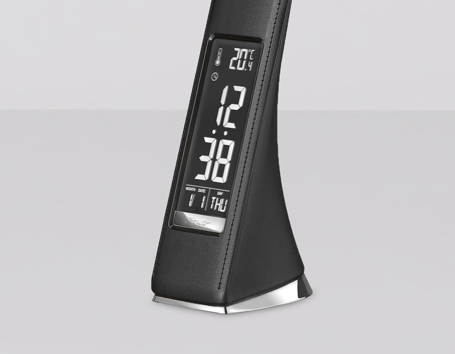 Светодиодная настольная лампа DE509 оформлена в современном стиле, черного цвета и выполнена по стандартам современных технологий. Данная модель с дисплеем, оснащена режимом диммирования, сменой цветовой температуры, что создаст комфортное освещене для любого потребителя, а так же встроенные часы, будильник, календарь и термометр.