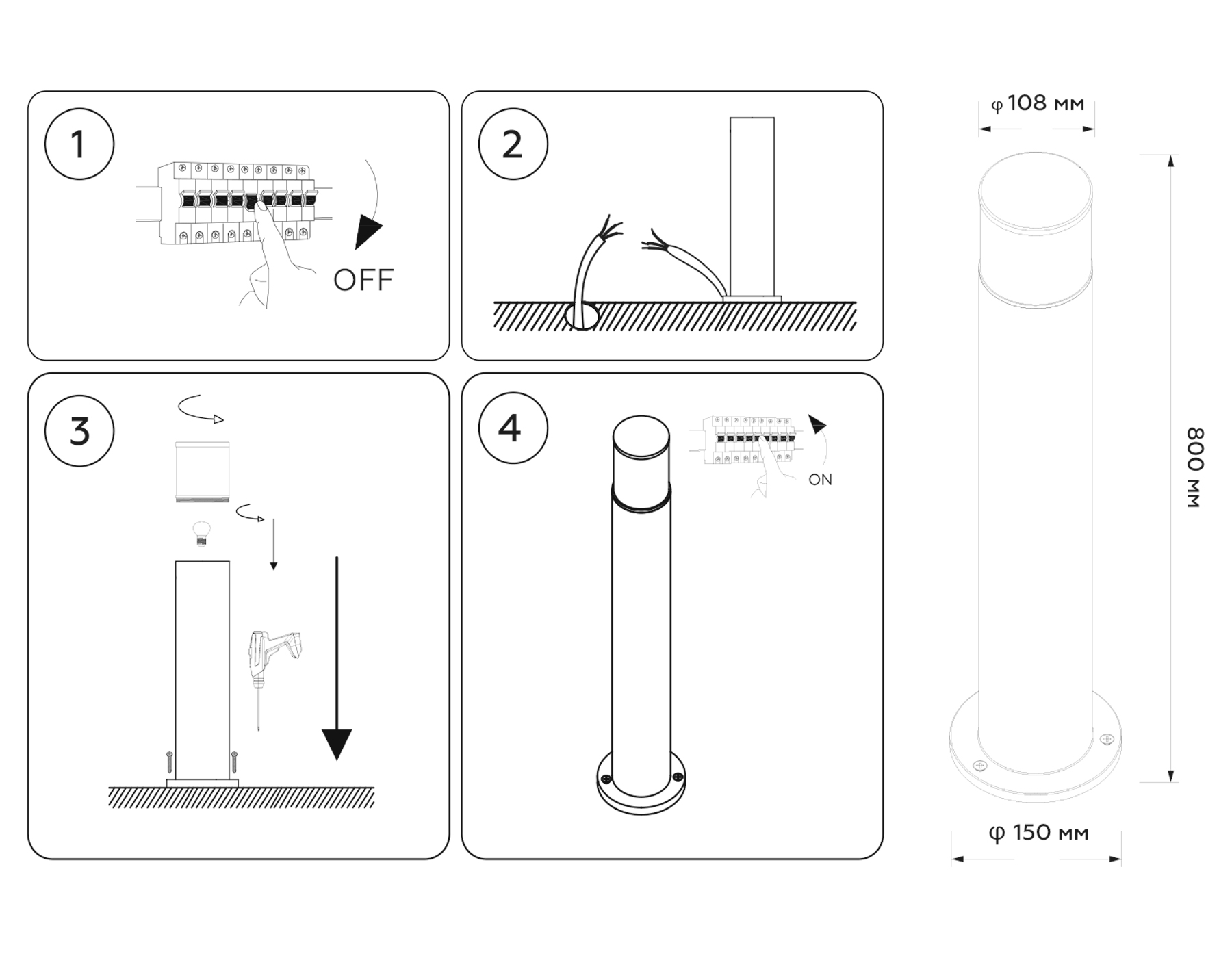 ST2536 BK/CL черный/прозрачный IP54 E27 max 11W D108*800