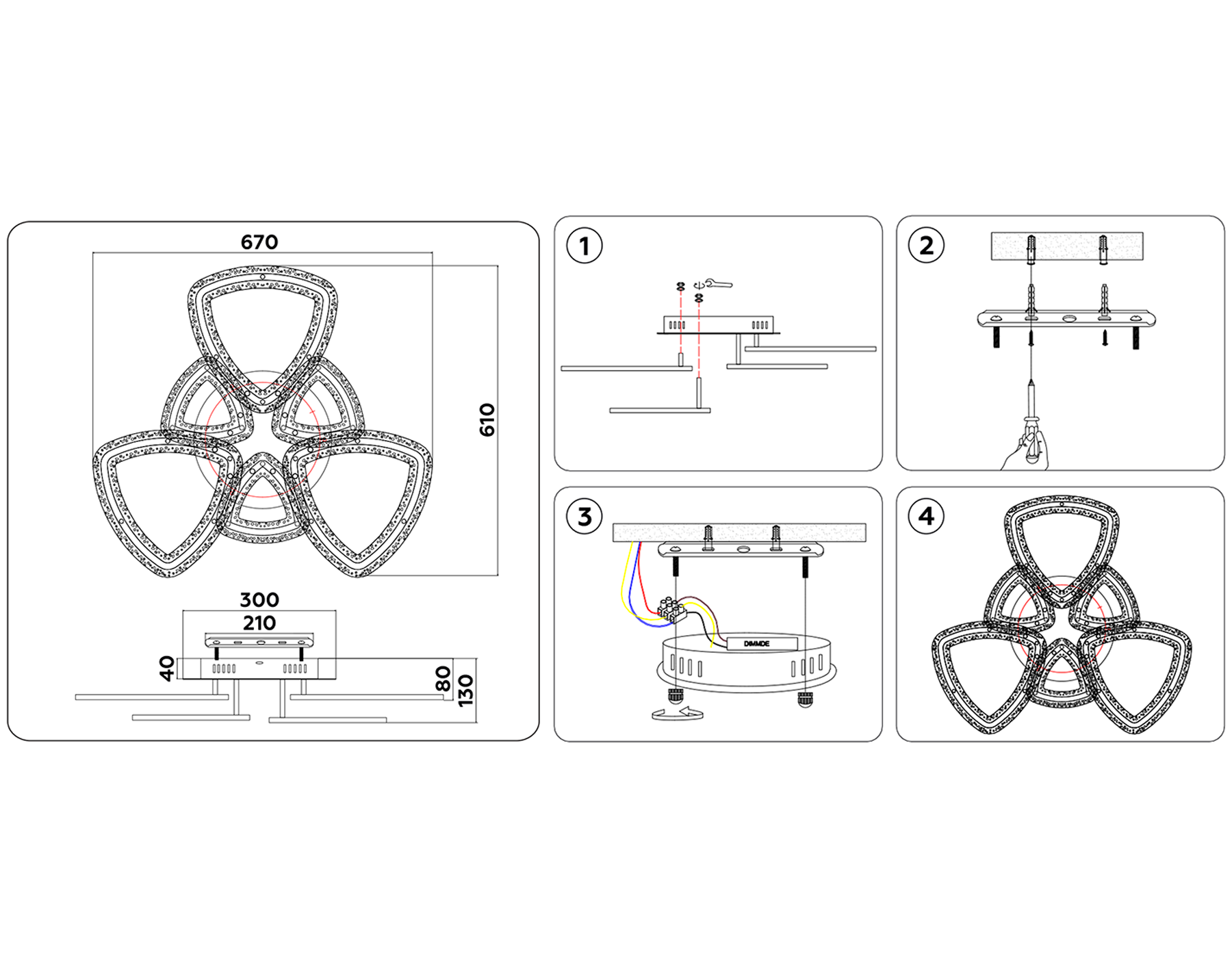 FA8861/3+3 CH хром 153W 3000K+6400K/3000K/6400K/4200K+4200K 670*610*130 (ПДУ РАДИО 2.4G)