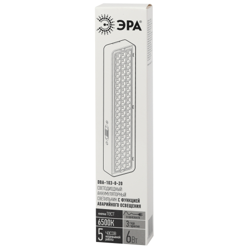 Светильник аварийный светодиодный. Область применения: Предназначен для освещения путей эвакуации, коридоров, проходов, запасных дверей; как эвакуационные или указательные светильники (при наличии пиктограмм).; 2 режима работы; время автономной работы 300 минут; наличие кнопки "ТЕСТ" для проверки работы в аварийном режиме. Гарантия:3 года.Диапазон рабочих температур:(+1+35). Класс энергоэффективности:A. Климатическое исполнение:УХЛ4. Преимущества:2 режима работы; время автономной работы 300 минут; наличие кнопки "ТЕСТ" для проверки работы в аварийном режиме.Цветовая температура:6500K. Материал корпуса:пластик. Габариты: 250x57x29мм. Потребляемая мощность:6Вт. Степень защиты от окружающей среды:IP20. Тип рассеивателя: прозрачный. Тип кривой: Д.Питающее напряжение светильника: 230Вт.