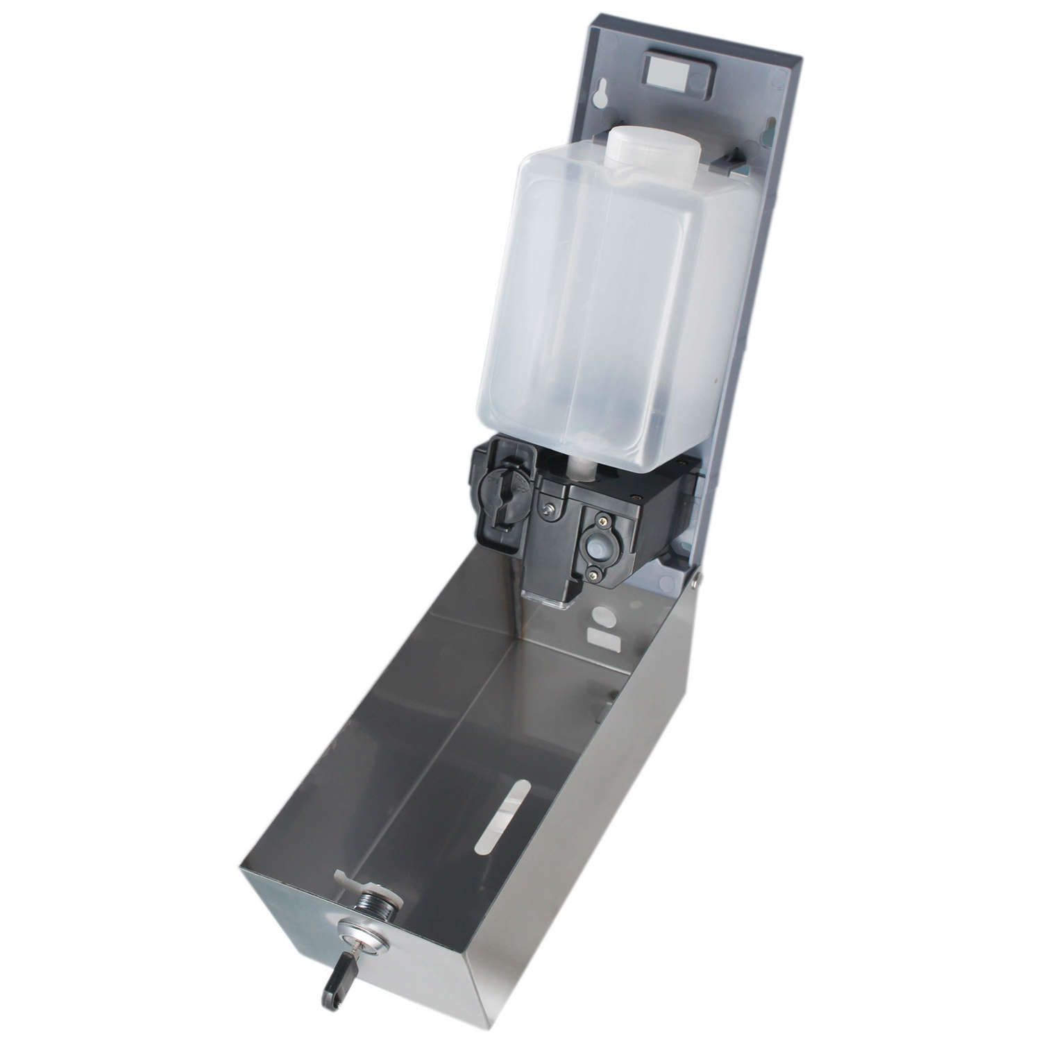 Автоматический дозатор жидкого мыла предназначены для установки в любых санитарно-гигиенических комнатах. Он прост в применении и обслуживании, довольно вместителен, выполнен из блестящей нержавеющей стали. Дозатор имеет запорное металлическое устройство, что делает его антивандальным. Дозатор работают от сенсора , достаточно поднести руку для получения порции мыла. Для удобства контроля за уровнем мыла на лицевой поверхности есть смотровое окно.