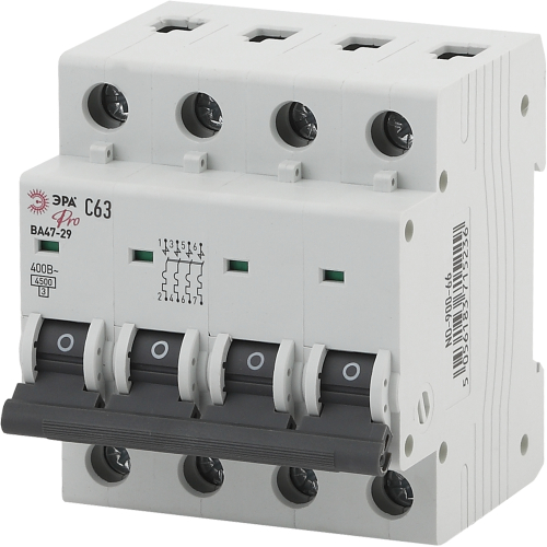 Автоматический выключатель - контактный коммутационный аппарат, способный включать токи, проводить их и отключать при нормальных условиях в цепи, а также включать, проводить в течение нормированного (заданного) времени и автоматически отключать токи при нормированных ненормальных условиях в цепи, таких, как токи короткого замыкания. Автоматические выключатели бывают одно-, двух-, трёх- или четырёхполюсными и имеют следующие конструктивные узлы: главную контактную систему, дугогасительную систему, привод расцепляющего устройства, расцепители. Автоматические выключатели ВА47-29 предназначены для защиты распределительных и групповых цепей, имеющих различную нагрузку: электроприборы, освещение выключатели с характеристикой В; двигатели с небольшими пусковыми токами (компрессор, вентилятор) выключатели с характеристикой C; двигатели с большими пусковыми токами (подъемные механизмы, насосы) выключатели с характеристикой D.