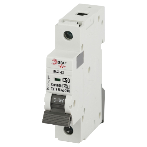 Автоматический выключатель - контактный коммутационный аппарат, способный включать токи, проводить их и отключать при нормальных условиях в цепи, а также включать, проводить в течение нормированного (заданного) времени и автоматически отключать токи при нормированных ненормальных условиях в цепи, таких, как токи короткого замыкания. Автоматические выключатели бывают одно-, двух-, трёх- или четырёхполюсными и имеют следующие конструктивные узлы: главную контактную систему, дугогасительную систему, привод расцепляющего устройства, расцепители. Автоматические выключатели ВА47-63 предназначены для защиты распределительных и групповых цепей, имеющих различную нагрузку: электроприборы, освещение выключатели с характеристикой В; двигатели с небольшими пусковыми токами (компрессор, вентилятор) выключатели с характеристикой C; двигатели с большими пусковыми токами (подъемные механизмы, насосы) выключатели с характеристикой D.