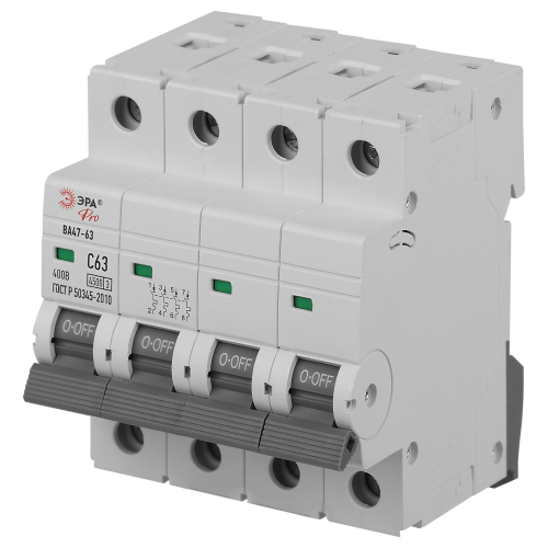 Автоматический выключатель - контактный коммутационный аппарат, способный включать токи, проводить их и отключать при нормальных условиях в цепи, а также включать, проводить в течение нормированного (заданного) времени и автоматически отключать токи при нормированных ненормальных условиях в цепи, таких, как токи короткого замыкания. Автоматические выключатели бывают одно-, двух-, трёх- или четырёхполюсными и имеют следующие конструктивные узлы: главную контактную систему, дугогасительную систему, привод расцепляющего устройства, расцепители. Автоматические выключатели ВА47-63 предназначены для защиты распределительных и групповых цепей, имеющих различную нагрузку: электроприборы, освещение выключатели с характеристикой В; двигатели с небольшими пусковыми токами (компрессор, вентилятор) выключатели с характеристикой C; двигатели с большими пусковыми токами (подъемные механизмы, насосы) выключатели с характеристикой D.
