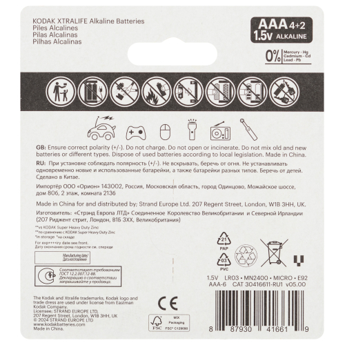 Серия XTRALIFE - экономичная серия щелочных батареек KODAK.