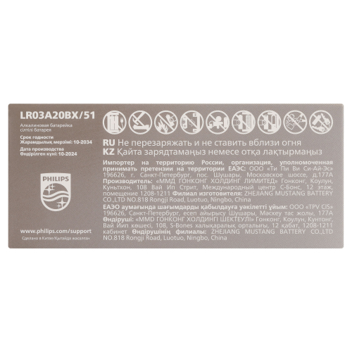 • Щелочные батареи Philips содержат 0 % кадмия, ртути и свинца