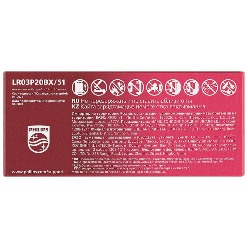 • Щелочные батареи Philips содержат 0 % кадмия, ртути и свинца