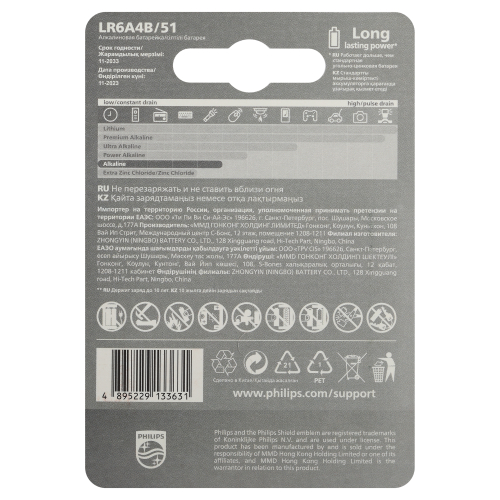 • Щелочные батареи Philips содержат 0 % кадмия, ртути и свинца