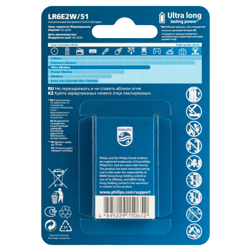 Для удовлетворения потребностей потребителя Philips предлагает комплексный портфель наиболее часто используемых батарей (AA, AAA, C, D, 9 В) в различных вариантах упаковки