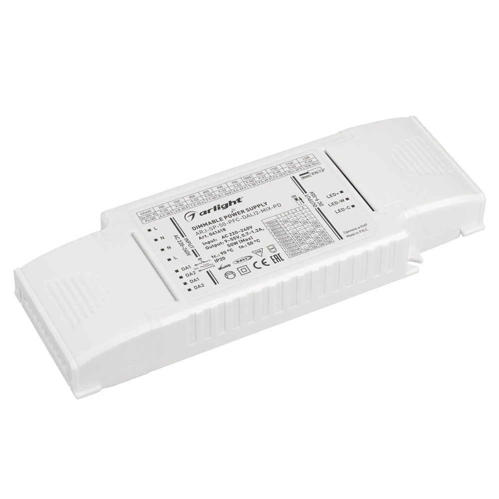 Источник тока с возможностью диммирования и управления цветовой температурой по протоколу DALI2 - DT8 предназначен для управления светильниками MIX (CCT). Высокая стабильность выходного тока и низкий коэффициент пульсаций обеспечивают свечение без эффекта мерцания. Устройство предназначено для работы внутри помещений, имеет скромные габариты, что позволяет встраивать его в корпус светильника.