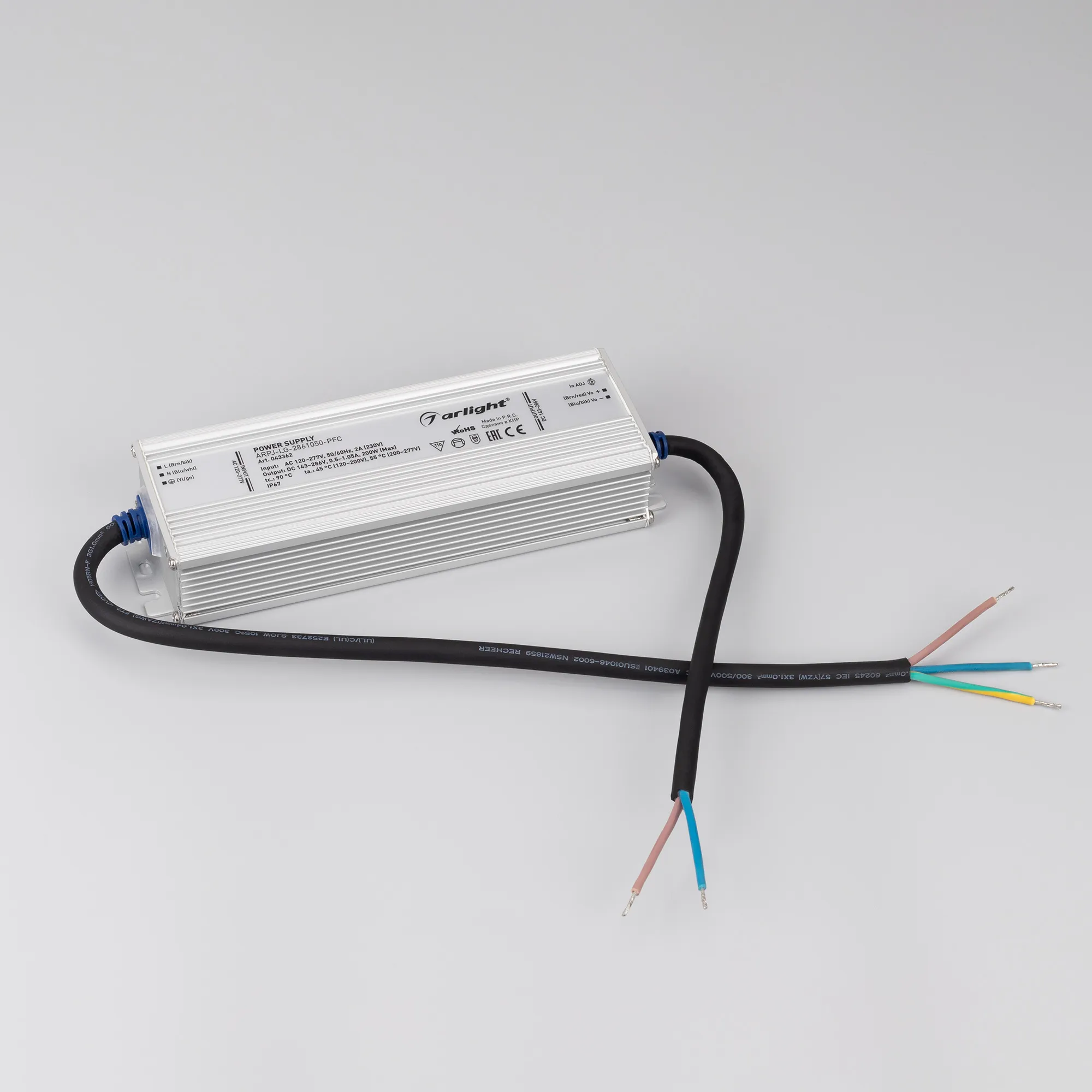 Источник тока серии ARPJ-LG с гальванической развязкой предназначен для питания различных типов светильников и светодиодов. Устройство оснащено встроенным потенциометром с регулировкой выходного тока в широком диапазоне, благодаря чему устройство станет универсальных решением для множества светильников. Отлично подойдёт в проекты уличного освещения, стадионов, дорожной и другой инфраструктуры. Высокая степень влагозащиты IP67 позволяет использовать устройство как внутри, так и вне помещений, с соблюдением правил и требований к установке. Встроенный корректор коэффициента мощности позволяет снизить реактивную мощность источника питания, что положительным образом отражается на количестве потребляемой энергии.