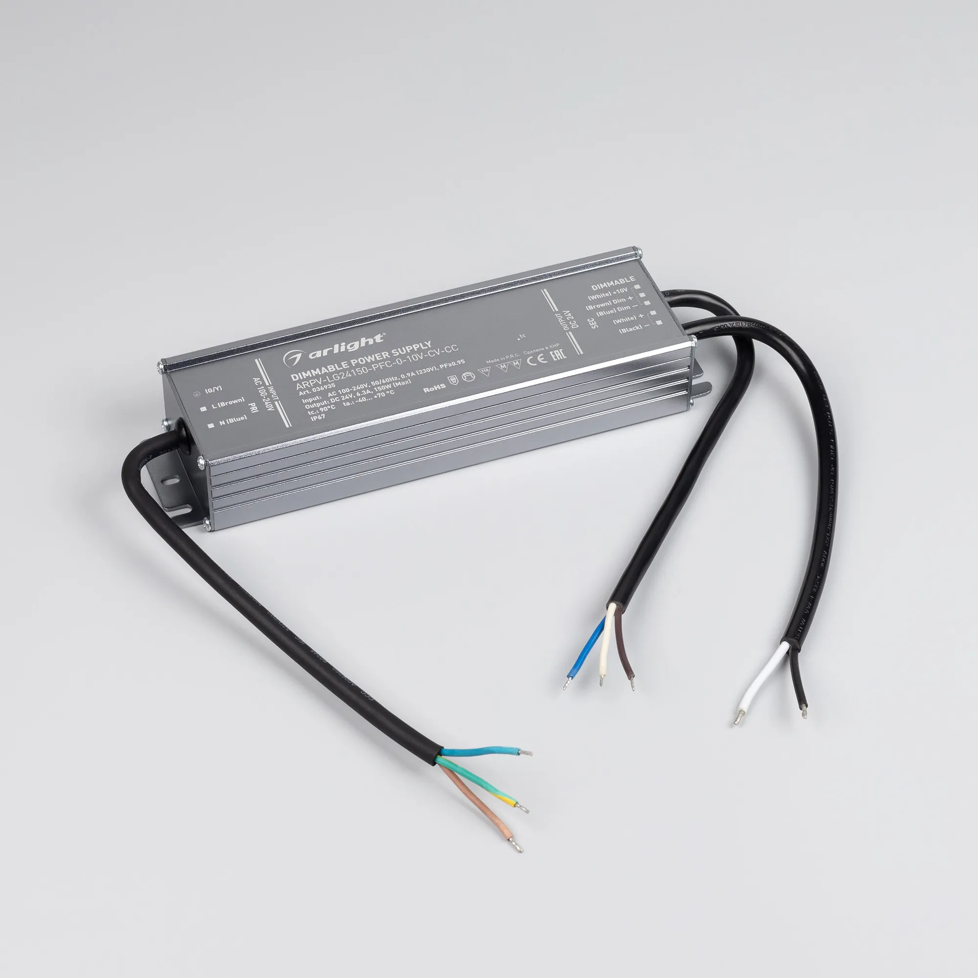 Диммируемый по стандарту 1-10 В источник напряжения с функцией CV+CC с гальванической развязкой применяется для питания различных типов светодиодных изделий. Имеет диапазон диммирования от 10 до 100% с помощью выходного напряжения. При диммировании и при достижении максимальной мощности на выходе работает в режиме источника тока. Металлический корпус обладает хорошим теплоотводом, а высокая степень влагозащиты IP67 позволяет использовать устройство как внутри, так и вне помещений, с соблюдением правил и требований к установке.