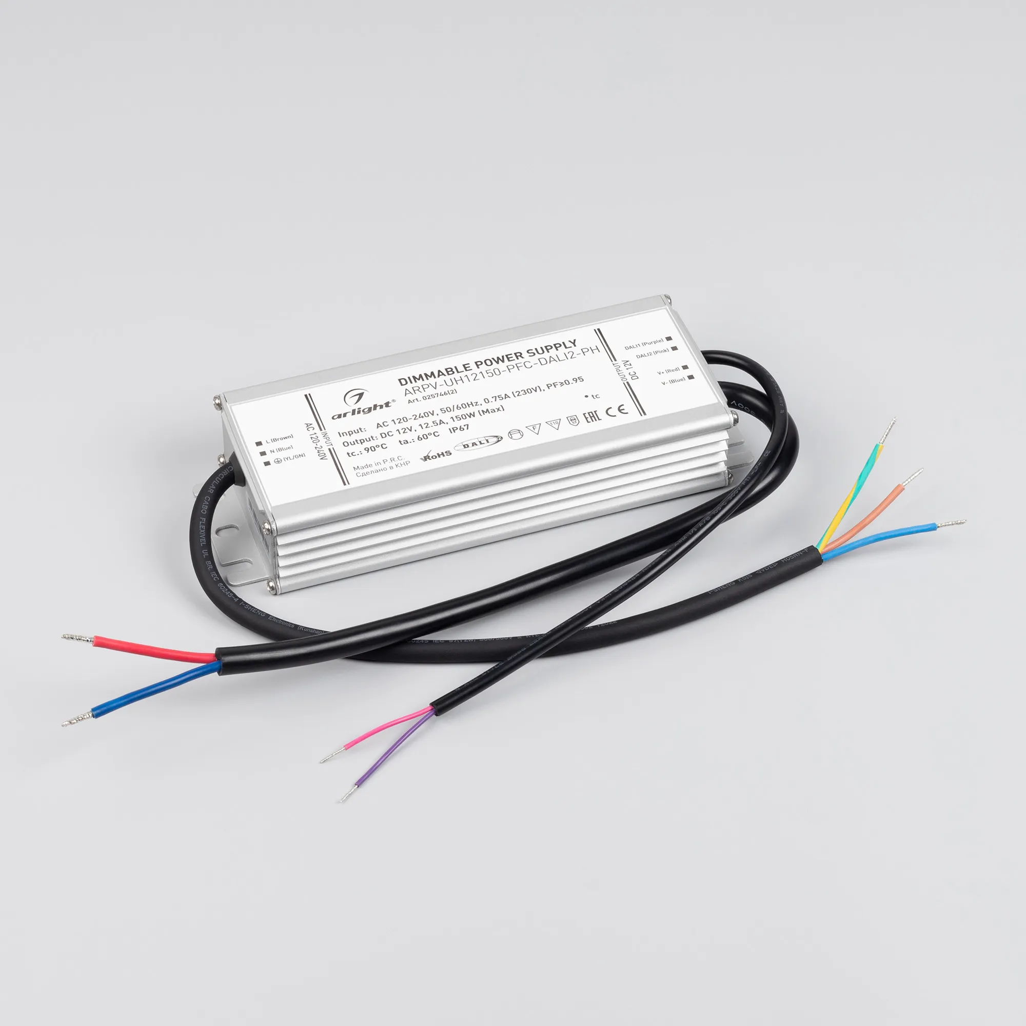 Диммируемый по цифровому протоколу DALI-2 источник напряжения с гальванической развязкой применяется для питания различных типов светодиодных изделий. Устройство отличается усиленной компонентной базой, которая увеличивает ресурс и позволяет использовать изделие в высоконагруженных проектах. Металлический корпус обладает хорошим теплоотводом, а высокая степень влагозащиты IP67 позволяет использовать устройство как внутри, так и вне помещений, с соблюдением правил и требований к установке. Высокая эффективность и расширенная гарантия 7 лет - основные преимущества линейки ARPV-UH.