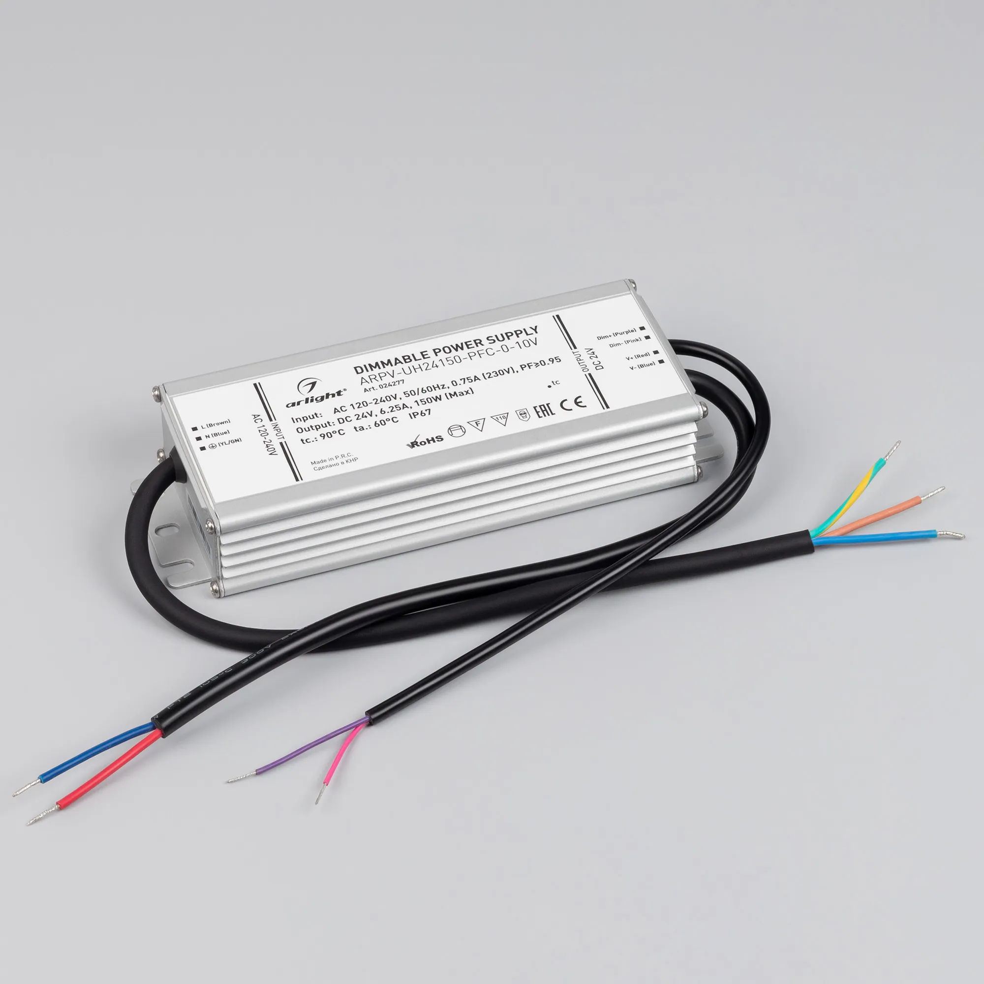 Диммируемый по стандарту 0/1-10 В источник напряжения с гальванической развязкой применяется для питания различных типов светодиодных изделий. Имеет диапазон диммирования от 0 до 100%. Устройство отличается усиленной компонентной базой, которая увеличивает ресурс и позволяет использовать изделие в высоконагруженных проектах. Металлический корпус обладает хорошим теплоотводом, а высокая степень влагозащиты IP67 позволяет использовать устройство как внутри, так и вне помещений, с соблюдением правил и требований к установке. Высокая эффективность и расширенная гарантия 7 лет - основные преимущества линейки ARPV-UH.
