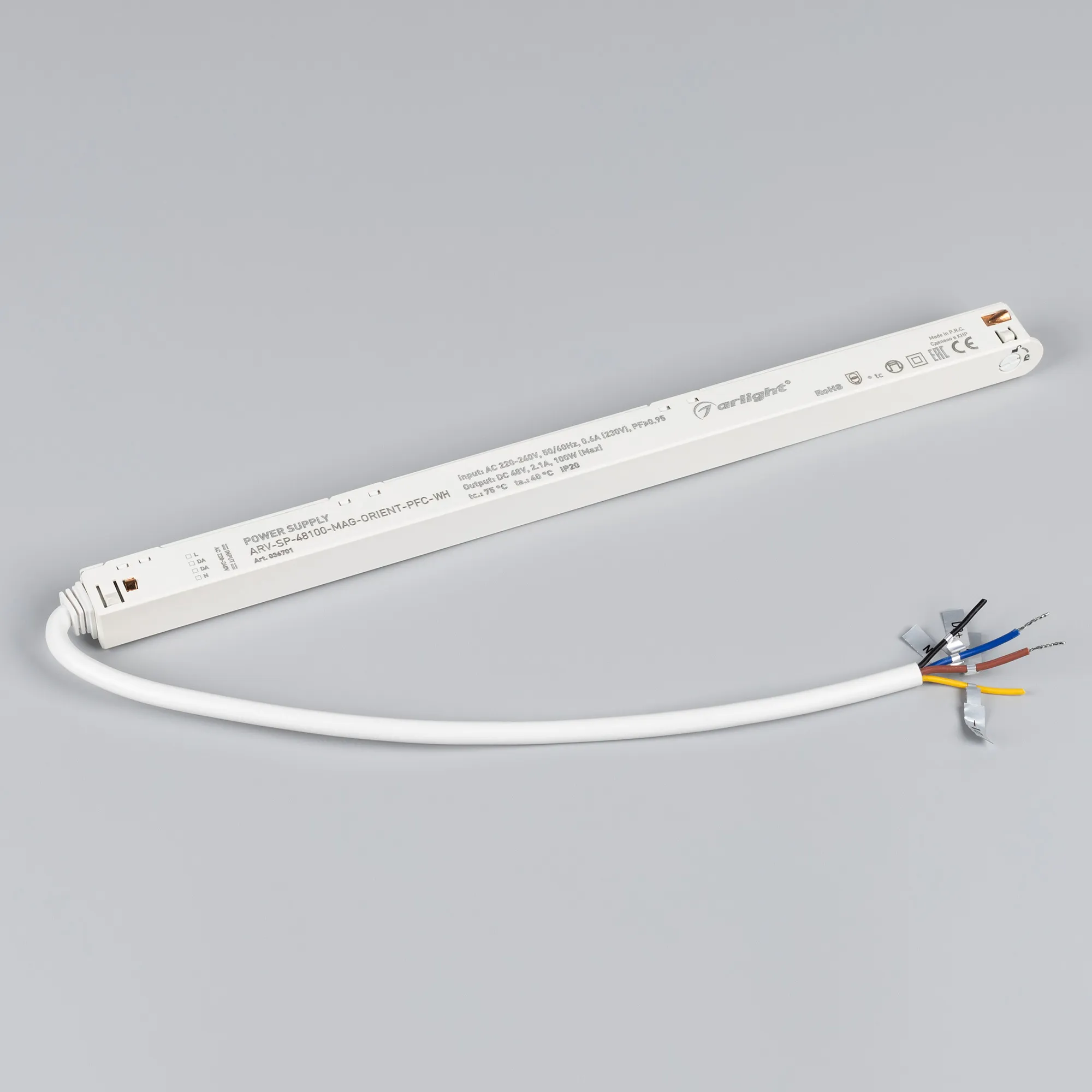Источник напряжения серии ARV-MAG с гальванической развязкой применяется для работы в составе магнитной системы ORIENT. Эргономичный пластиковый корпус с покрытием "soft touch" устанавливается непосредственно в шинопровод и практически незаметен для потребителя. Для притязательных клиентов продукт оснащён магистральными проводами для шины DALI, которые можно использовать при необходимости. Эксплуатация только внутри помещений. Простой монтаж и технологичность - основные преимущества серии ARV-MAG.