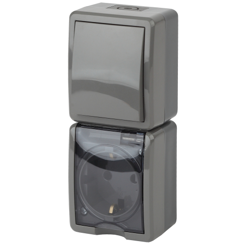 Блок розетка с выключателем влагозащищённый IP54 серии Эра Эксперт открытой установки цвет серый 11-7407-03. Номинальные характеристики 16А 250В. Устройство выполнено из качественного поликарбоната, оснащёно уникальными винтовыми клеммами ЭКСПЕРТ для максимально качественного зажима кабеля в механизме.