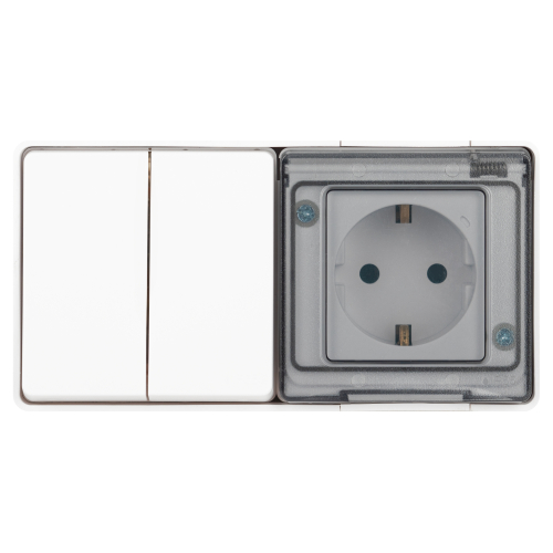 Блок розетка с выключателем влагозащищённый IP55 серии Эра Эксперт открытой установки цвет белый 11-7502-01. Номинальные характеристики 16А 250В. Устройство выполнено из качественного поликарбоната, оснащёно уникальными винтовыми клеммами ЭКСПЕРТ для максимально качественного зажима кабеля в механизме.