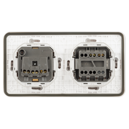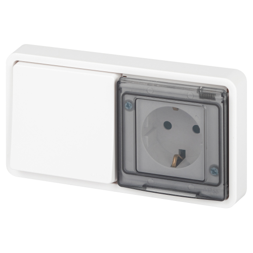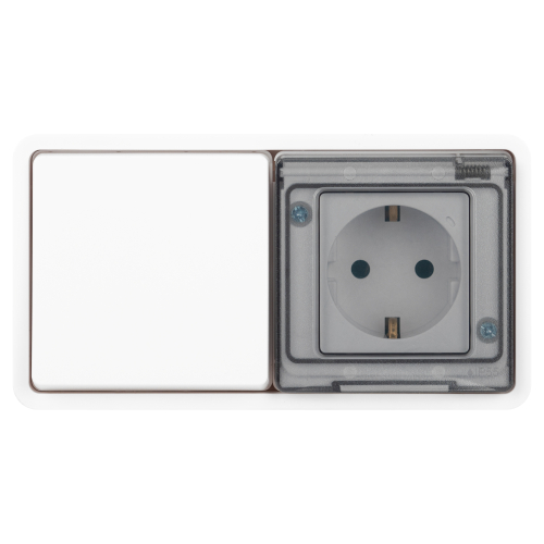 Блок розетка с выключателем влагозащищённый IP55 серии Эра Эксперт скрытой установки цвет белый 11-7521-01. Номинальные характеристики 16А 250В. Устройство выполнено из качественного поликарбоната, оснащёно уникальными винтовыми клеммами ЭКСПЕРТ для максимально качественного зажима кабеля в механизме.