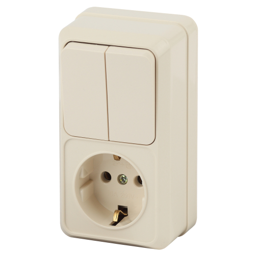 Блок розетка с выключателем Intro Quadro 2-706-02 двойным вертикальный 10(16)А-250В, IP20, ОУ, слоновая кость.
