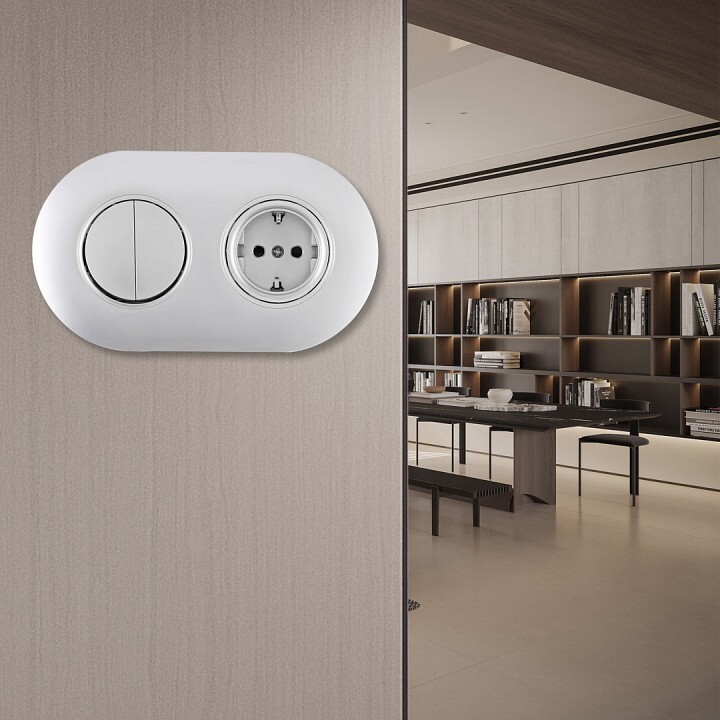 Комплектующие для светильников,Выключатели двухклавишные,Розетки влагозащищенные с заземлением и шторками,с крышкой,Блоки с розеткой и выключателем