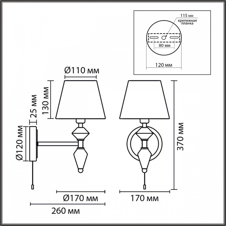 светильник предназначен для использования со скрытой проводкой