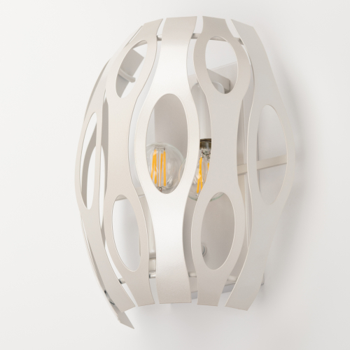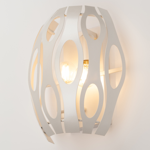 Металлические светильники с уникальной геометрией и благородным жемчужным окрашиванием. Невесомость и воздушность металла создана новой методикой высокоточной лазерной резки. Вы полюбите Rivoli за необычный световой рисунок, который словно по волшебству появится на стенах, потолке, на полу. Эта серия преобразит любой интерьер! Коллекия представлена бра на 2 лампы.