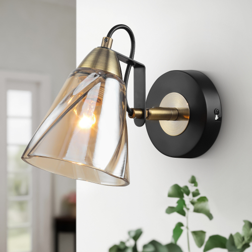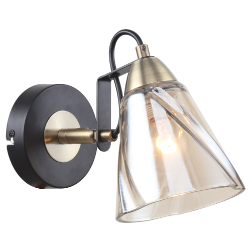 Цвета корпуса бра – чёрный и латунь. Открытый стеклянный плафон обеспечивает яркий направленный вниз свет, тонированное стекло смягчает блики. Бра под лампу Е14 40 Вт создаёт подсветку площади до 3 м2. Такое бра настенное – незаменимый помощник при вечернем чтении, отдыхе в спальне или гостиной. Бра на стене помогают зонировать пространство. Бра делают комнату функциональной. Дизайн разработан в Италии. При производстве бра настенного применены высококачественные материалы.