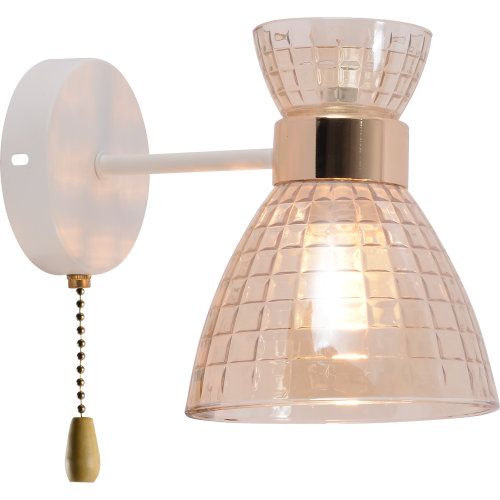 Серия светильников в сочетании белого и золота с тонированными плафонами — изящное и современное решение для вашего интерьера. В коллекции люстры на 4 и 6 ламп, а также бра с удобным выключателем-цепочкой. Подходят лампы с цоколем E27, мощностью до 60 Вт (лампы в комплект не входят).