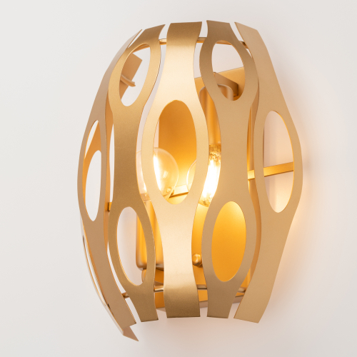 Со светильниками Rivoli Mitzi комната будет наполнена воздухом, светом и стилем. Благодаря уникальному методу высокоточной лазерной резки, создателям этой серии удалось добиться невесомости металла и особой плавности линий узора. Благородный золотой цвет абажура с перламутровым напылением это солнце, навсегда поселившееся в вашем доме! Коллекция представлена бра на 2 лампы.