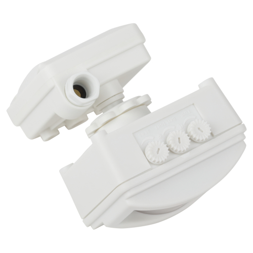 Данный датчик движения крепится к прожектору и применяется для автоматического включения и выключения освещения на территории загородного участка, в темных производственных помещениях, на лестничных клетках. Устройство обнаруживает движение в сенсорной зоне (5-12 метров в зависимости от индивидуальных настроек) и автоматически включает свет. Угол обзора 120 градусов. Мощность 1200 Вт. Имеется возможность регулировки времени задержки выключения (от 10 секунд до 7 минут) и настройки чувствительности к внешнему освещению, что позволяет значительно снизить потребление электроэнергии. Датчик движения экономит денежные средства и упрощает быт. Его можно применять как в помещениях, так и снаружи, благодаря защите от пыли и влаги (индекс защиты оболочки корпуса по международной классификации IP44).