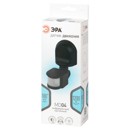 ЭРА MD 04 Датчик движения настенный позволяет производить автоматическое включение осветительных приборов, питающихся от сети 220 В, при появлении движущегося объекта в зоне обнаружения датчика. Благодаря этому , а также наличию регулировки времени задержки выключения и настройки чувствительности к внешней освещенности, обеспечивается экономия не только вашего времени, но и денег за счет разумной Экономии электроэнергии.