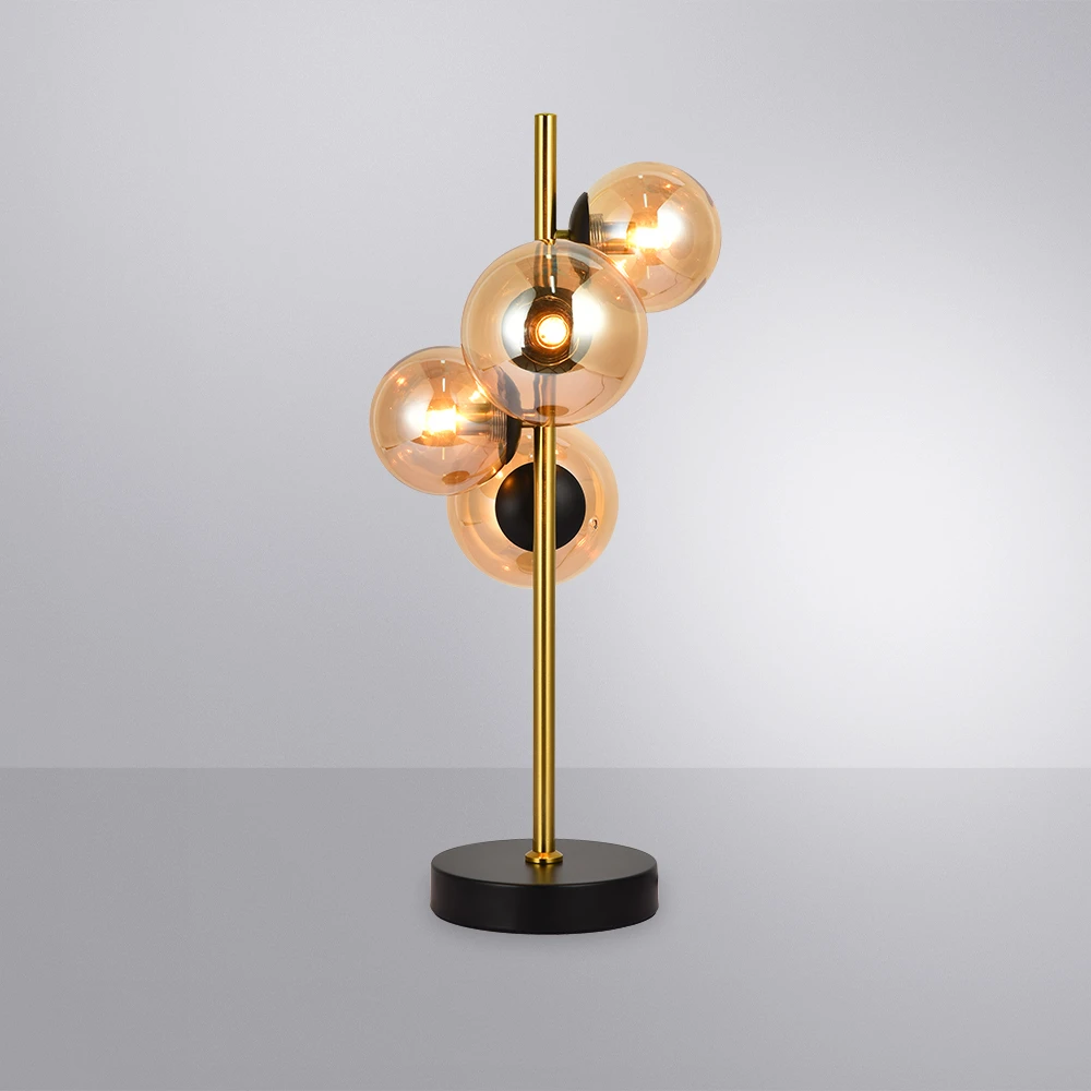 Настольная лампа Arte Lamp GEMINI A2243LT-4PB в стиле модерн. Медная арматура эффектно сочетается с плафоном из янтарного стекла, создавая теплый рассеянный свет. Плафоны направлены в стороны, что позволяет осветить нужную зону. Лампа работает с галогеновыми источниками света. Металлическое основание обеспечивает устойчивость на любой поверхности. Гарантия производителя составляет 36 месяца.