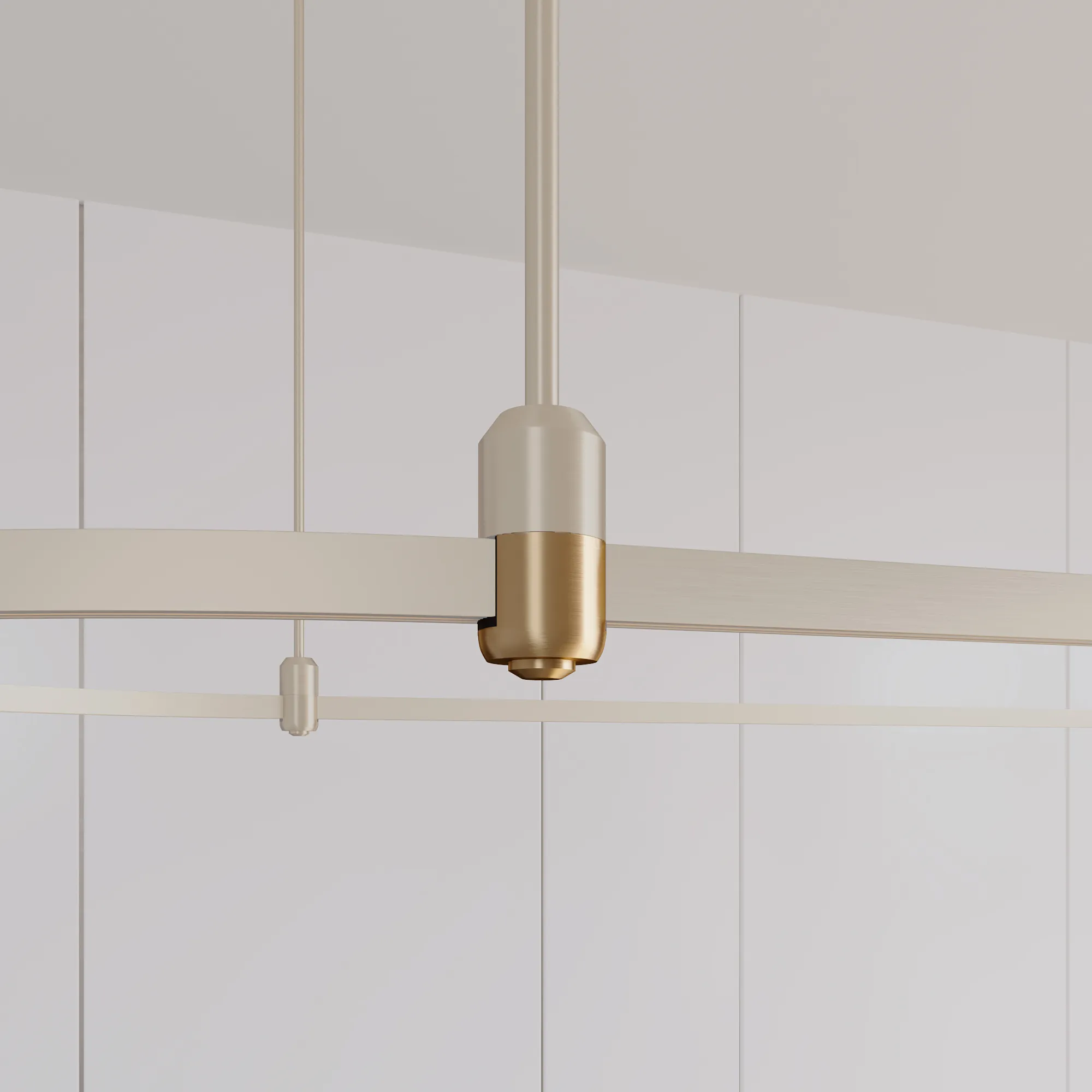 Держатель трека HOLDER-CON-A используется для механического соединения 2х треков и присоединения к ним подвесов или жестких коннекторов с тип крепления А, в том числе при создании многоуровневых конструкций. Держатель оснащён встроенной пластиковой перегородкой и не является сквозным. Держатель имеет тип крепления A. Размер: Ø38 х 52,5 мм. Не проводит электричество. Изготавливается из алюминия, анодированного в цвет светлое золото.