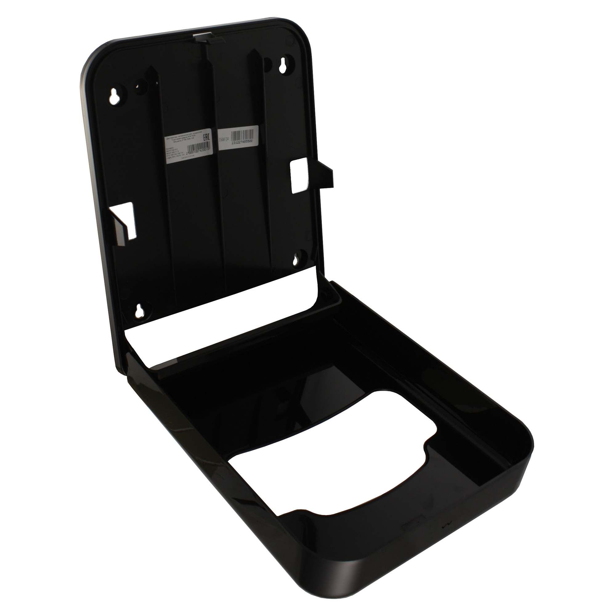 Диспенсер гигиенических покрытий для унитаза выполнен из чёрного пластика.
