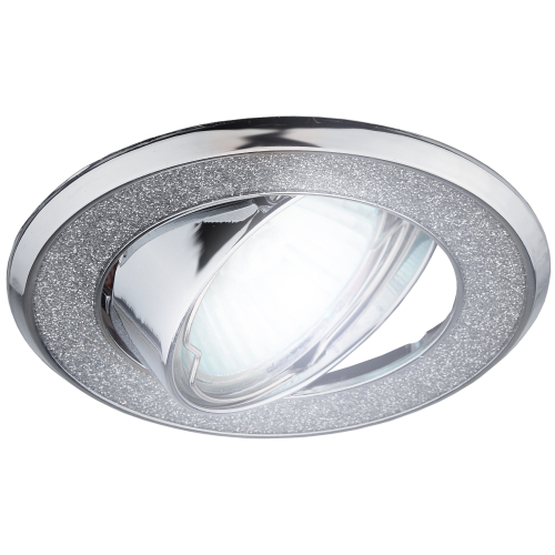 Поворотный светильник ЭРА "круглый со стеклянной крошкой" DK18 CH/SH SL - идеальное решение для вашей комнаты! Светодиодный светильник можно использовать как в качестве главного освещения, так и для создания акцентов в определенных зонах комнаты. Благодаря скрытой части корпуса светильники можно встраивать в потолок или стены, создавая разный функционал помещений. Светильник ЭРА с ярким дизайном подойдет для помещений с разным интерьером: от минимализма до хай-тека, прованса или скандинавского стиля. Благодаря поворотному механизму у Вас появится уникальная возможность направлять свет в разные точки: например, на кухне осветить рабочую зону, а в кабинете место для чтения. Максимальная мощность лампы – 50 Вт. Корпус встраиваемого светильника изготовлен из алюминия, что делает его особенно удобным в использовании. Диаметр отверстия, требуемого для установки светильника составляет 75 мм, а диаметр самого светильника – 85 мм. Цоколь под лампу GU5.3 в комплекте. Купив точечный светильник бренда ЭРА, вы останетесь довольны и сможете создать уют в доме!