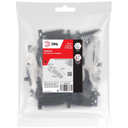 Дюбели для кабельного бандажа ЭРА применяется при монтаже кабельных трасс хомутами к поверхностям стен и потолка на бетонных, кирпичных и деревянных поверхностях. Специально для стяжки на головке дюбеля предусмотрено отверстие, в которое крепится кабельная сятжка.