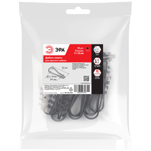 Дюбель-хомуты ЭРА предназначены для крепления круглых и плоских проводников, жестких и гибких труб на несущих строительных поверхностях, испытывающих статическую нагрузку. Могут быть установлены в любой материал: бетон, кирпич, дерево, ДСП, фанеру, газобетон и т.д., а также в стены, выполненные из пеноблоков и природного камня.