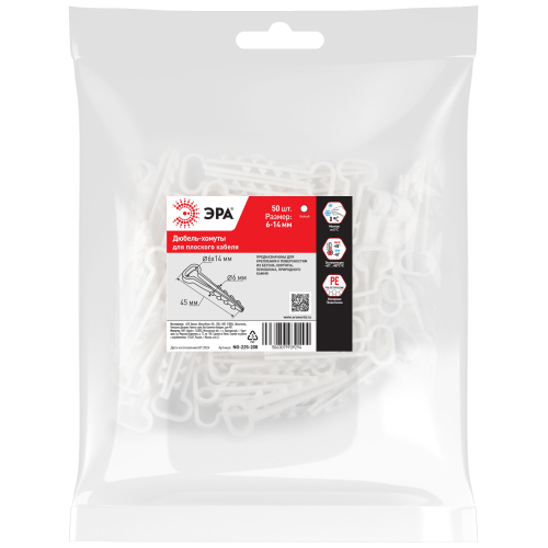 Дюбель-хомуты ЭРА предназначены для крепления круглых и плоских проводников, жестких и гибких труб на несущих строительных поверхностях, испытывающих статическую нагрузку. Могут быть установлены в любой материал: бетон, кирпич, дерево, ДСП, фанеру, газобетон и т.д., а также в стены, выполненные из пеноблоков и природного камня.