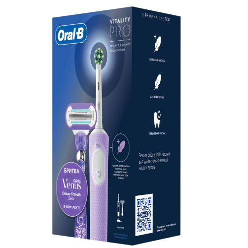 Электрическая зубная щетка нового поколения Oral-B Vitality Pro понравится даже любителям экстрабережного очищения благодаря уникальному режиму SENSITIVE PLUS. Oral-B Vitality Pro удаляет до 100% больше мягкого зубного налета по сравнению с обычной щеткой, а встроенный таймер оповестит вас о завершении 2-х минутной процедуры чистки. Сделайте выбор в пользу Oral-B — марки зубных щеток № 1, используемой большинством стоматологов в мире*.