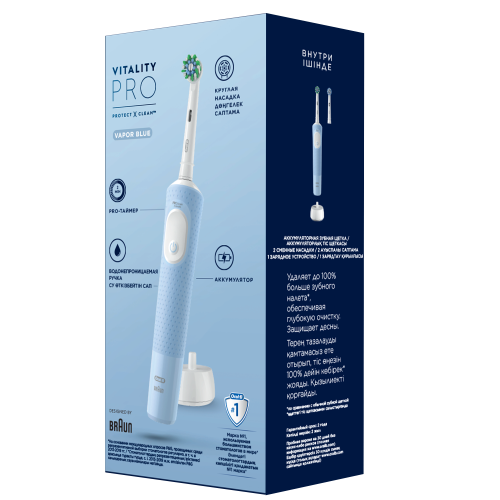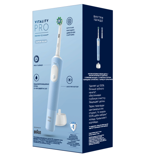 Оригинальная электрическая зубная щётка Oral-B Vitality Pro Голубая с одной дополнительной сменной насадкой Sensitive Clean, 1 шт