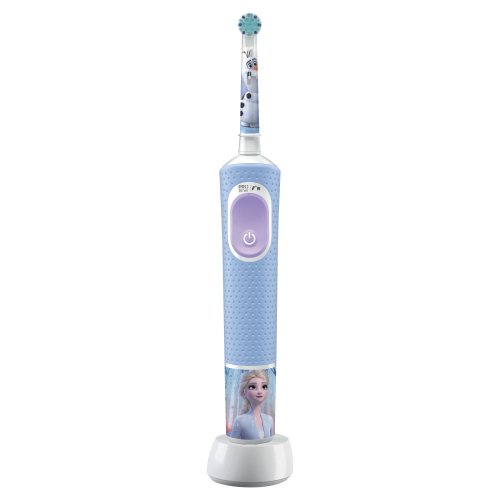 Как привить ребенку здоровую привычку ежедневно 2 раза в день чистить зубы и сделать этот процесс для него интереснее? В этом поможет электрическая зубная щетка Oral-B Vitality Pro для детей от 3 лет с дизайном с любимыми героями мультфильма Disney «Холодное Сердце 2». Зубная щетка имеет два режима специально для деликатного ухода за полостью рта ребёнка. Экстрамягкие щетинки насадки, которая совершает возвратно-вращательные движения со скоростью 7600 об/мин, деликатно, но эффективно очищают эмаль от бактериального налета, не повреждая нежные десны. А размер насадки разработан специально для маленького детского рта. Особенности модели Oral-B Kids "Холодное сердце 2": • Зубная щетка подходит для детей от 3 лет. • Предусмотрены два режима: ежедневная и бережная чистка. В режиме «бережная чистка» электрическая зубная щетка Oral-B Kids особенно аккуратно очищает детские зубы, работая на сниженной скорости. • Удаляет на 100% больше налёта по сравнению с обычной зубной щёткой*. • Встроенный 2-мин. таймер. • Небольшая круглая насадка подходит для полости рта ребенка. • На 25% улучшенный аккумулятор по сравнению с серией Vitality. • Одного полного заряда аккумулятора хватает до 8 дней работы в автономном режиме. • Модель совместима с бесплатным мобильным приложением Disney Magic Timer для iOS и Android. • Персонализация щетки с помощью входящих в комплект 4 стикеров с персонажами мультфильма "Холодное Сердце 2". В комплект входят детская электрическая зубная щетка Oral-B Vitality Pro, 4 стикера (Эльза, Анна, сестры вдвоем, Олаф), 1 насадка и зарядная станция. Выбирайте Oral-B — это марка зубных щеток № 1, используемая большинством стоматологов мира*. ВАЖНО: Фирменная гарантия будет аннулирована в случае повреждения рукоятки в результате использования неоригинальных насадок. Oral-B не рекомендует использовать сменные насадки других производителей. *По сравнению с обычной ручной зубной щеткой **На основании международных опросов P&G, проводимых среди репрезентативной в