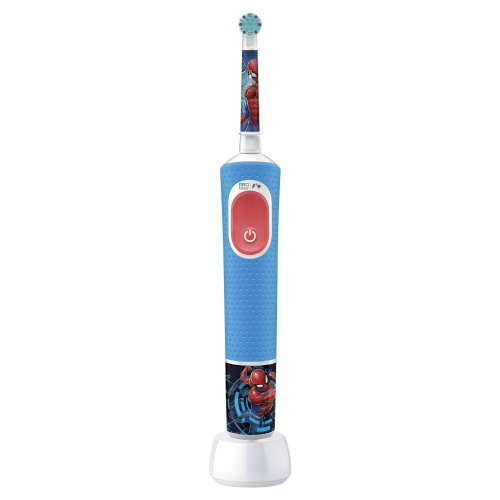 Детская электрическая зубная щетка Oral-B Vitality Pro Kids для детей от 3 лет с дизайном по мотивам комикса Marvel «Человек-паук» поможет ребенку соблюдать гигиену полости рта и сделает процесс увлекательнее. Зубная щетка имеет два режима специально для деликатного ухода за полостью рта ребёнка. Экстрамягкие щетинки насадки, которая совершает возвратно-вращательные движения со скоростью 7600 об/мин, деликатно, но эффективно очищают эмаль от бактериального налета, не повреждая нежные десны. А размер насадки разработан специально для маленького детского рта. Особенности модели Oral-B Kids «Человек-паук»: • Зубная щетка подходит для детей от 3 лет. • Предусмотрены два режима: ежедневная и бережная чистка. В режиме «бережная чистка» электрическая зубная щетка Oral-B Kids особенно аккуратно очищает детские зубы, работая на сниженной скорости. • Удаляет на 100% больше налёта по сравнению с обычной зубной щёткой*. • Небольшая круглая насадка подходит для полости рта ребенка. • На 25% улучшенный аккумулятор по сравнению с серией Vitality. • Одного полного заряда аккумулятора хватает до 8 дней работы в автономном режиме. • Модель совместима с бесплатным мобильным приложением Disney Magic Timer для iOS и Android. • Персонализация щетки с помощью входящих в комплект 4 наклеек с героями комикса «Человек-паук».